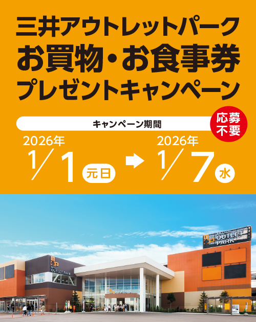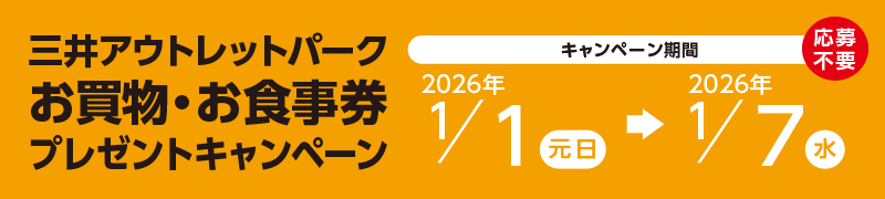 抽選で50名様に、全国の三井アウトレットパークで使える お買物・お食事券1,000円分(500円券×2枚)をプレゼント。