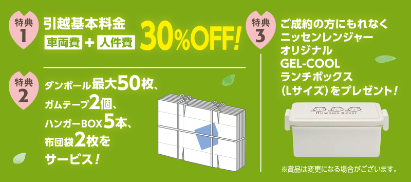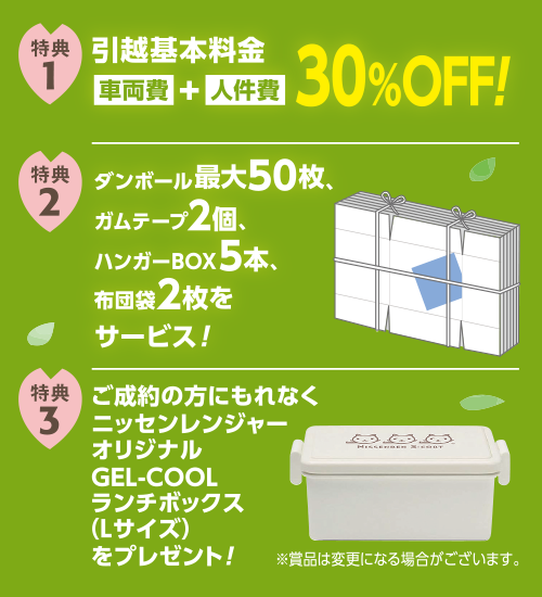 - 「ニッセンレンジャーオリジナルGEL-COOLランチボックス(Lサイズ)」はお引越し日当日に、アート引越センター作業員よりお渡しいたします。