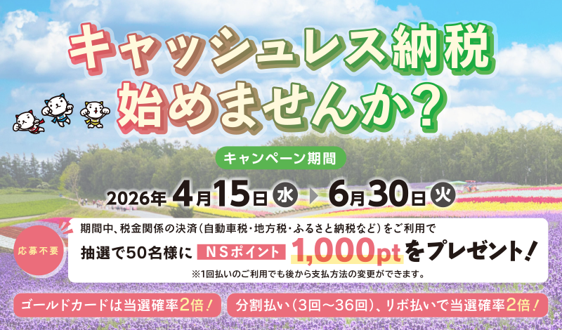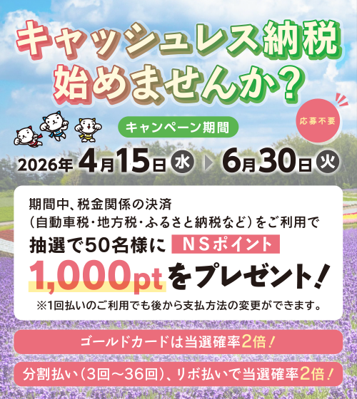 - 自動車税の納付期限(2026年6月1日)など、各種納税には納付期限があります。クレジットカードのご利用方法とあわせて詳しくは各自治体、納税サイトにてご確認、お問合せください。