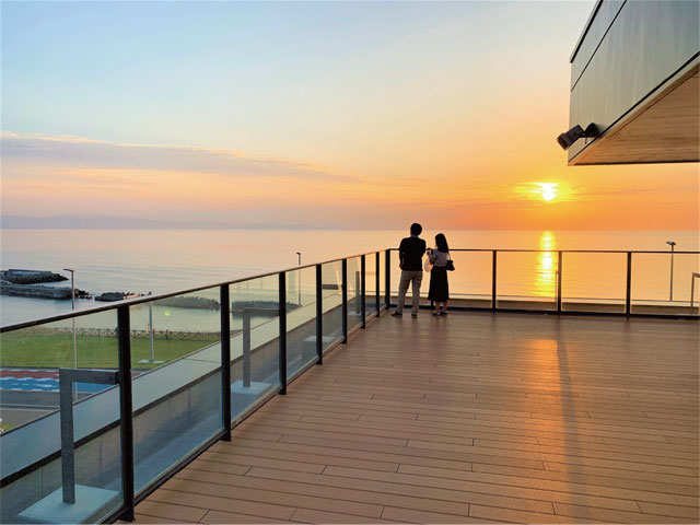 小高い丘の上に建つ3階建ての道の駅で、最上階の展望フロアからは日本海を一望できます。館内にはそば処や地場産品販売コーナー、ピザや押し寿司、ジェラートが楽しめるフードコートがあり、石狩のグルメと絶景を満喫できます。